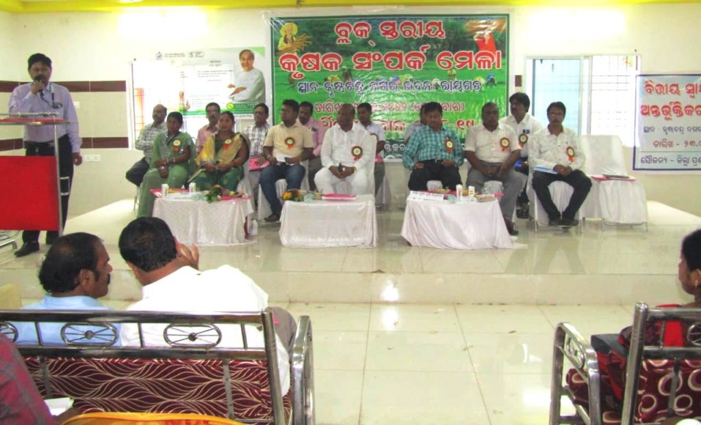 ଏଥର ସମ୍ଭାଳ (ରାୟଗଡା) – ରାୟଗଡା କୃଷ୍ଣ ଚନ୍ଦ୍ର ନଗର ଭବନ ଠାରେ ବ୍ଳକ ସ୍ତରୀୟ କୃଷକ ସଂପର୍କ ମେଳା ଓ ଆର୍ଥିକ ଅନଦାନ ୨୦୧୮-୧୯ କାର୍ଯ୍ୟକ୍ରମ ଅନୁଷ୍ଠିତ ହୋଇଥିଲା । ଏହି କାର୍ଯ୍ୟକ୍ରମରେ କୃଷିକ ମାନେ କିପରି ନିଜେ ଏକ ଭଲ ଲାଭବାନ ଚାଷୀ ହୋଇପାରିବେ ।ଯେପରିକି କୁକୁଡ଼ା ପାଳନ ,ଗୋ ପାଳନ, ମାଛ ଚାଷ ,ଛେଳି ପାଳନ ଧାନ, କୋପା,ହଳଦୀ ,ଫୁଲ , ବିଭିନ୍ନ ପ୍ରକାରର ଚାଷର ମାଟି ପରୀକ୍ଷା କରି ଚାଷ କରିବାକୁ କୃଷକ ମାନଙ୍କୁ ବିସ୍ତୃତରେ ଆଲୋଚନା କରିବା ସହ ସରକାରୀ ଯୋଜନା ଗୁଡ଼ିକର ଚାଷୀ ମାନଙ୍କର କିପରି ଭାବରେ ଲାଭବାନ ହୋଇପାରିବେ ତାହା ଆଜି ଏହି କୃଷକ ମେଳା ରେ କୁହାଯାଇଛି। ମେଳାରେ ରାୟଗଡାର ବିଭିନ୍ନ ବ୍ଳକରୁ ଆସି ଥିବା ଚାଷୀ ଭାଇ ଓ ଭଉଣୀମାନେ ଆସି କାର୍ଯ୍ୟକ୍ରମ ଯୋଗ ଦେଇଥିଲେ।ଏହି କୃଷକ ମେଳା ର ମୁଖ୍ୟ ଅଥିତି ଭାବେ ରାୟଗଡା ବିଧାୟକ ଶ୍ରୀ ମକ୍ରନ୍ଦ ମୁଦୁଲି, ରାୟଗଡ଼ା ଜିଲ୍ଲା କୃଷି ଅଧିକାରୀ ଶ୍ରୀ ରାମଚନ୍ଦ୍ର ଦାସ ଙ୍କ ସମେତ ବହୁ ମାନ୍ୟଗଣ୍ୟ ବ୍ୟକ୍ତି ଉପସ୍ଥିତ ଥିଲେ ।