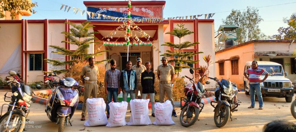 ଏଥର ସମ୍ଭାଳ ଗୁଡ଼ାରୀ : ରାୟଗଡ଼ା ଜିଲ୍ଲା ଗୁଡ଼ାରୀ ପୋଲିସ୍ କୁ ମିଳିଛି ବଡ଼ ସଫଳତା । ୬୩ କେଜି ଗଞ୍ଜେଇ ୩ଗୋଟି ବାଇକ୍ ଓ ଗୋଟିଏ ସ୍କୁଟି ସହ ୩ ଜଣ ସଂପୃକ୍ତ ବ୍ୟକ୍ତିଙ୍କୁ ଗିରଫ କରି ୧୦ତାରିଖ ସନ୍ଧ୍ୟା ୫. ଘଣ୍ଟା ସମୟରେ କୋର୍ଟ ଚାଲାଣ କରିଛି । ଏକ ବିଶେଷ ସୂତ୍ରରୁ ଖବର ପାଇ ଗୁଡ଼ାରୀ ଥାନା ଓ ଗୁମୁଡା ଫାଣ୍ଡିର ମିଳିତ ଉଦ୍ୟମରେ ପଦ୍ମପୁର ବ୍ଲକ୍ ଅନ୍ତର୍ଗତ ଡେରୀଙ୍ଗା ଗ୍ରାମ ପଞ୍ଚାୟତ ଜଇର ପାଙ୍ଗା ନିକଟରେ ପେଟ୍ରୋଲିଂ କରୁଥିବା ସମୟରେ ତିନିଗୋଟି ବାଇକ୍ ସହ ଗୋଟିଏ ସ୍କୁଟି ଯୋଗେ ଛଅ ଜଣ ବ୍ୟକ୍ତି ଆସୁଥିବା ଦେଖି କୌଶଳ କ୍ରମେ ଗାଡ଼ିକୁ ଅଟକାଇ ଯାଞ୍ଚ୍ କରିବା ସମୟରେ ୬୩ କେଜି ଗଞ୍ଜେଇ ତିନିଗୋଟି ବାଇକ୍, ଏକ ସ୍କୁଟି ଜବତ୍ ସହ ତିନିଜଣ ସଂପୃକ୍ତ ବ୍ୟକ୍ତିଙ୍କୁ ଗିରଫ କରିଥିବା ବେଳେ ଆଉ ତିନି ଜଣ ଫେରାର ହୋଇଥିବା ଅତିରିକ୍ତ ଥାନା ଅଧିକାରୀ ଶ୍ରୀଯୁକ୍ତ ରାଜେସ୍ୱର୍ ଶବର ସୂଚନା ଦେଇଛନ୍ତି । ସଂପୃକ୍ତ ୩ ଜଣ ବ୍ୟକ୍ତିଙ୍କୁ ଗୁଡ଼ାରୀ ଥାନା କେସ ନଂ୩/୨୩ଧାରା ୨୦(ଖ)(୨)(ଗ) ଏବଂ ଏନଡିପିସି ଆକ୍ଟ୍ର ଧାରା୨୫)୨୯ କ୍ରମେ କେସ ରୁଜୁ କରାଯାଇଥିବା ଥାନା ଅଧିକାରୀ ସୂଚନା ଦେଇଛନ୍ତି ।ଗଞ୍ଜେଇ ର ଆନୁମାନିକ ମୂଲ୍ୟ ୬ ଲକ୍ଷ ୩୦ହଜାର ହେବ ବୋଲି ଆକଳନ। କରାଯାଇଥିବା ବେଳେ ମାଜିଷ୍ଟେଟ୍ ଭାବେ ଅତିରିକ୍ତ ତହସିଲଦାର ଶ୍ରୀଯୁକ୍ତ ହୃଷିକେଶ ପଣ୍ଡା ଦାୟିତ୍ଵ ତୁଲାଇଥିଲେ । ଜବତ ବେଳେ ଥାନାର ଅତିରିକ୍ତ ଅଧିକାରୀ ଗୟା ମୁଦୀନ ଖାନ୍ ସହ ପୋଲିସ ବିଭାଗର ଅନ୍ୟ କର୍ମଚାରୀ ମାନେ ଉପସ୍ଥିତ ଥିଲେ ।