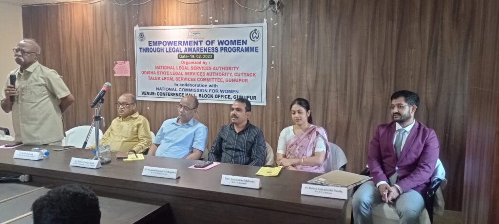 ଏଥର ସମ୍ଭାଳ ବ୍ୟୁରୋ(ଗୁଣୁପୁର)- ରାୟଗଡା ଜିଲ୍ଲା ଗୁଣୁପୁର ବ୍ଲକ ସଦଭାବନା ଗୃହ ରେ ଜାତୀୟ ମହିଳା କମିଶନ ଜାତୀୟ ତାଳୁକ ଲିଗାଲ ଏଥରିଟି ଏବଂ ଭାରତ ସରକାର ଙ୍କ ମହିଳା ଏବଂ ଶିଶୁ ମନ୍ତ୍ରଣାଳୟ ର ସାହାରା ପରିବାର ପରାମର୍ଶ କେନ୍ଦ୍ର ର ମିଳିତ ଆନୁକୂଲ୍ୟରେ ରେ ମହିଳା ସଶକ୍ତିକରଣ ଏବଂ ତତ ସମ୍ବନ୍ଧୀୟ ଆଇନ ଉପରେ ଏକ ସଚେତନତା ଶିବିର ଅନୁଷ୍ଠିତ ହୋଇ ଯାଇଛି ।ଏହି ଅବସରରେ ଆୟୋଜିତ ଏକ ସଭାରେ ଅତିରିକ୍ତ ଜିଲ୍ଲା ଦୌରା ଜର୍ଜ ମାନସ ରଞ୍ଜନ ରଥ ଅଧକ୍ଷତା କରିଥିବା ବେଳେ ସବଜର୍ଜ ସନ୍ତୋଷ କୁମାର ମହାପାତ୍ର ଏସ ଡି ଜେ ଏମ ଶାନ୍ତଶ୍ରୀ ମହାନ୍ତି ପ୍ରଥମ ଶ୍ରେଣୀ ବିଚାରପତି ଦେବ ସଂପ୍ରିୟ ନଂଦ ଅତିଥି ଭାବେ ଯୋଗ ଦେଇ ଥିଲେ । ଅନ୍ୟ ମାନଙ୍କ ମଧ୍ୟ ରେ ଓକିଲ ସଂଘ ସଭାପତି ବ୍ରହ୍ମାନନ୍ଦ ପଟନାୟକ ଏବଂ ସାହାରା ପରିବାର ପରାମର୍ଶ କେନ୍ଦ୍ର ର ସଭାପତି ପ୍ରମୋଦ କୁମାର ସାହୁ ଯୋଗ ଦେଇ ମହିଳା ସଶକ୍ତିକରଣ ଏବଂ ମହିଳା ଆଇନ ଉପରେ ଆଲୋକପାତ କରିଥିଲେ ଚେତନା ଶିବିରରେ ସ୍ଥାନୀୟ ବରିଷ୍ଠ ଆଇନଜୀବି ଉମା ଚରଣ ପଟନାୟକ ଏବଂ ସସ୍ମିତା ପାତ୍ର ଯୋଗଦେଇ ମହିଳା ଏବଂ ତତ ସମ୍ବନ୍ଧିନୀୟ ବିଭିନ୍ନ ଆଇନ ଉପରେ ବୁଝାଇ ଥିଲେ । ଶିବିର ରେ ବ୍ଲକ ର ଶତାଧିକ ମହିଳା ଗ୍ରୁପ ର ସଦସ୍ୟ ଅଙ୍ଗନବାଡି ମା ଏବଂ ଆଶା କର୍ମୀ ଯୋଗ ଦେଇ ଥିଲେ । ଏହି କାର୍ଯ୍ୟକ୍ରମ ରେପ୍ରଥମ ଶ୍ରେଣୀ ବିଚାରପତି ଦେବ ସଂପ୍ରିୟା ନଂଦ ଦେଇ ସ୍ଵାଗତ ଭାଷଣ ଦେବା ସହ ଧନ୍ୟବାଦ୍ ଅର୍ପଣ କରିଥିଲେ ।